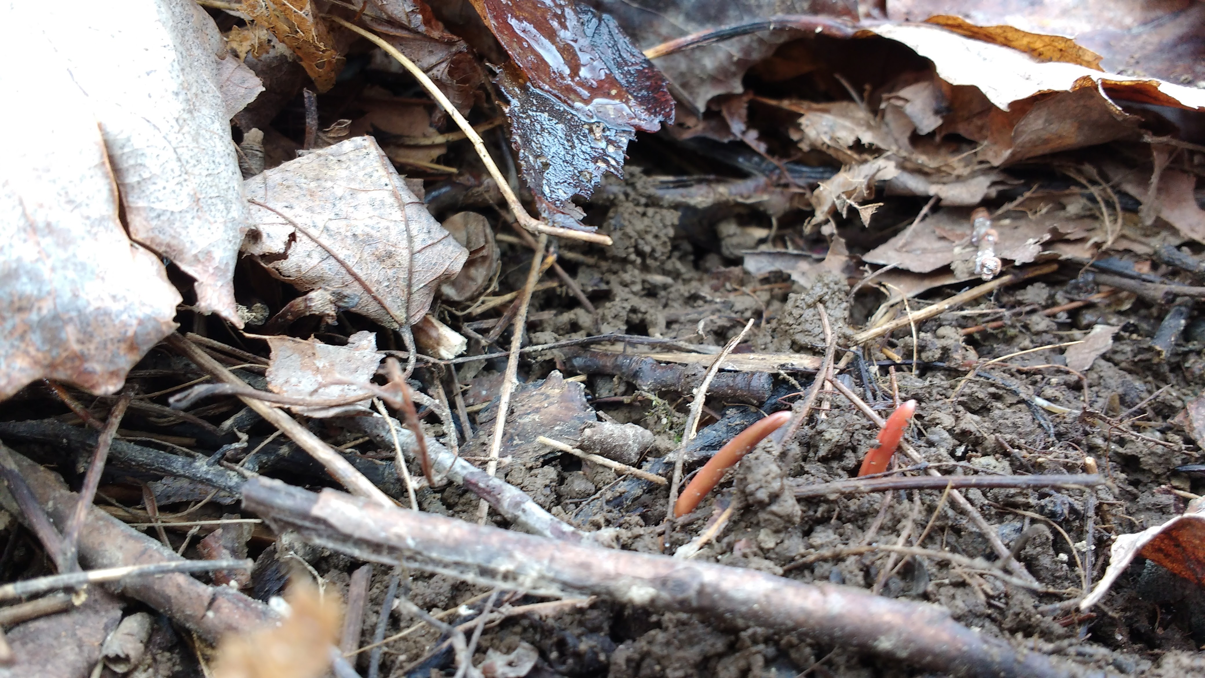 Patience! The massive springtime display photo comes at the end of the post. This is the foreshadowing. It starts in mid-April with tiny red spears poking up underneath the leaf litter. This is the stage at which I would dig the corms to eat, although I never remember to take a spade into the woods with me, and the pea-sized corms are often too deep to dig without tools. Last year was the first time I tasted these, and they’re delightfully crunchy and sweet, like jicama.